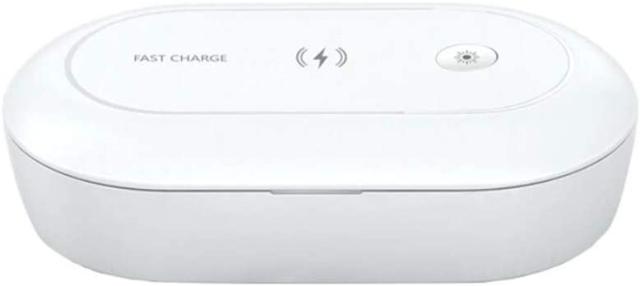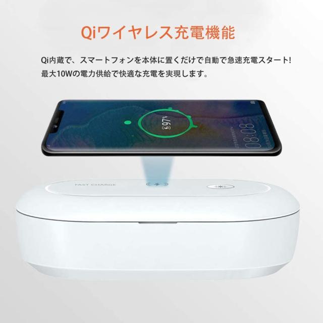 在庫処分 12%オフ スマホ紫外線消毒ボックス 【10Wワイヤレス充電器】 紫外線+オゾン携帯殺菌 uv iPhone Android 対応 99%細菌消滅/抗菌多機能旅行除菌器 スマホ マスク メガネ 時計 入れ歯 シェーバー 歯ブラシ小物滅菌ボックス 滅菌器