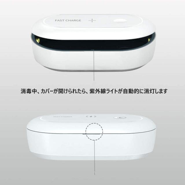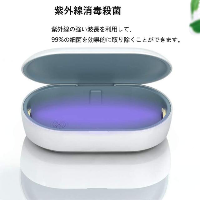 【UV 紫外線+オゾン消毒機能】紫外線(UV-C)光線+オゾンを利用して、紫外線の強い波長を利用して、99%の細菌を効果的に取り除くことができます。オゾンは紫外線が当てられない場所のバクテリアを除去します。 スマホだけではなく、眼鏡、歯ブラシ、イヤホン、マスク、パンツ、化粧器具(小形)、ネックレス、腕時計、クレジットカード、鍵、紙幣などにも消毒可能。