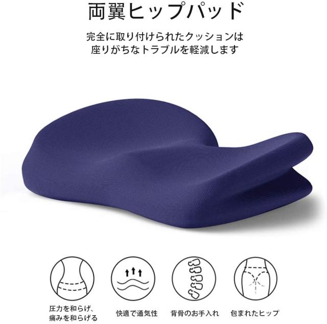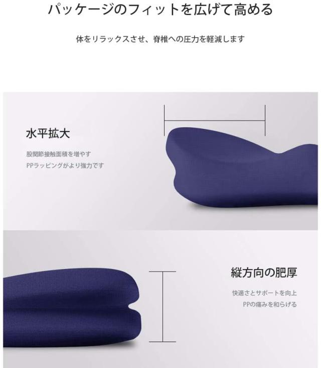 *幅を広げて高さを上げたデザインは、体をリラックスさせ、背骨への圧力を軽減し、臀部のカーブにフィットします。ヒップと太ももの形状にやさしくフィットする右リニアアーチ採用のクッションです。お尻や太ももの圧迫を吸収し、長時間座っても疲れにくく、お尻が痛く、快適で健康的なクッションです。毎日の通勤や長距離運転をしたい方にお勧めです。