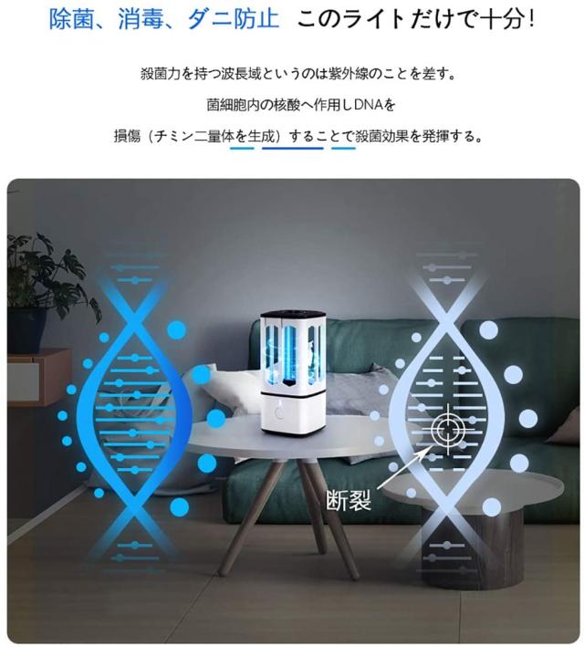 紫外線とオゾンの組み合わせて、185-254nm波長の紫外線は、健康に悪い影響あるヴィルス、細菌などの微生物を20秒直接に死滅させます。迅速に安全殺菌可能です。アレルギー、喘息および有害な病気を引き起こす可能性のある匂い、細菌、真菌、カビ、ウイルスを除去します。 滅菌率&ダニ除去率は最大99.9%に達する!家族に健康的な生活環境を与えましょう。