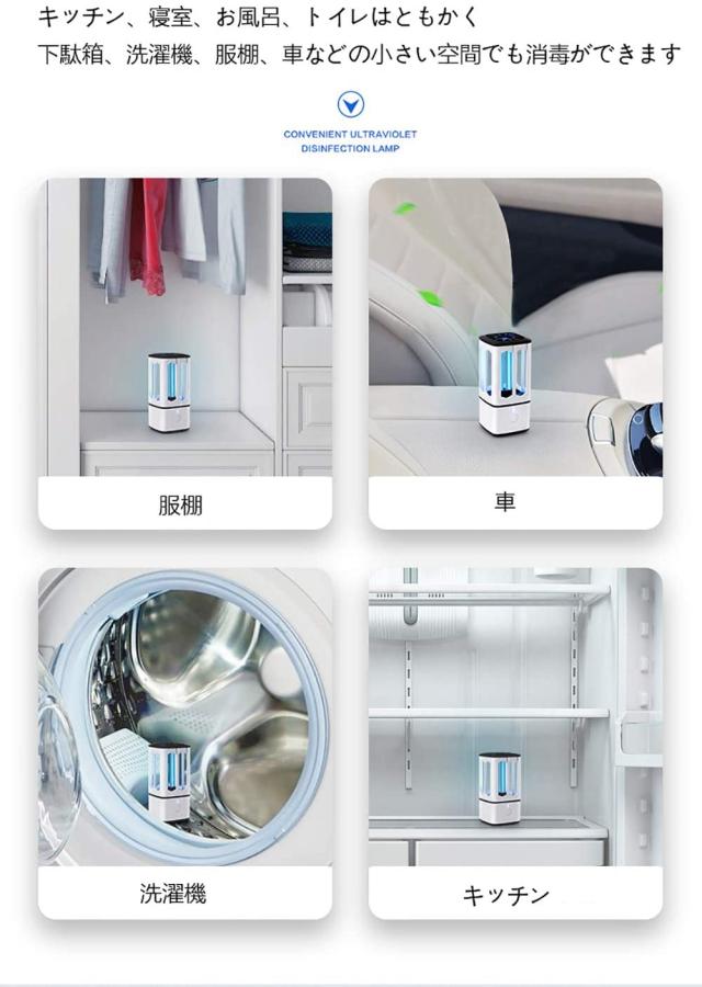 USB充電できます、1000mAhリチウム電池で完全充電には最大2時間、6回消毒できます、照射時間は最大3時間。家だけでなくて、ジム、車、旅行でもオフィスでも大活躍です。