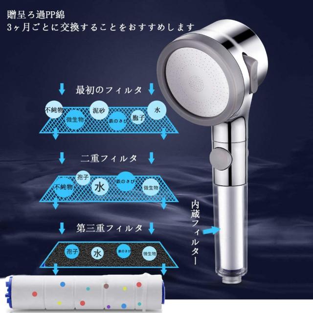 ・PPフィルタースポンジをプレゼントし、内蔵の活性炭フィルターは一般家庭の約40,000 Lの塩素除去能力に相当します。毎日のシャワーは15分、3〜4ヶ月ごとに変えてください。
