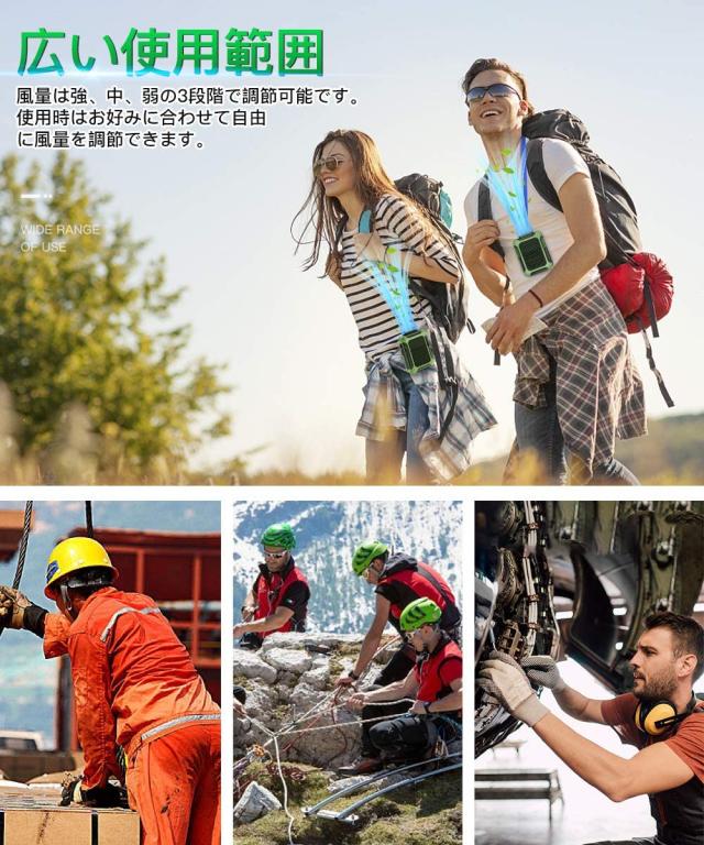 アウトドア運動者(釣り好き、ハイキング、登山、工事現場、厨房、農作業、野外作業、工場内、倉庫)いろいろな場所で持ち運び便利ご使用できます。バッテリー内蔵タイプだからジャマになりにくく、着脱しやすいのも嬉しいですね.