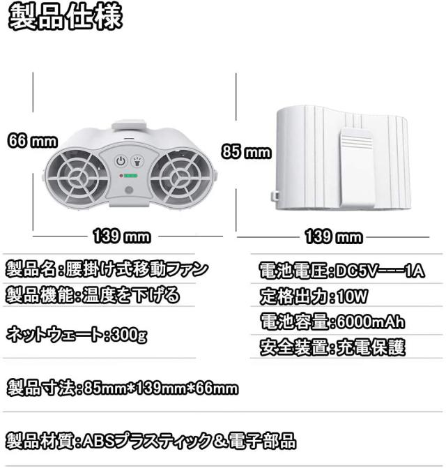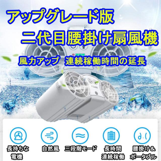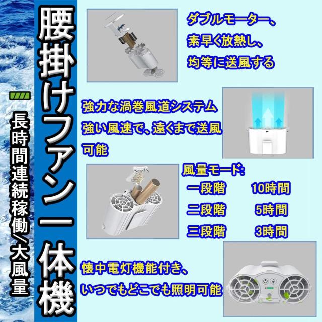 ベルトファン携帯扇風 機腰掛け扇風機 超強風 空調服ファン 屋外作業 熱中症対策作業USB充電式大容量6000mAhバッテリー内蔵