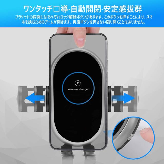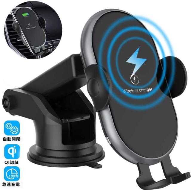 車載Qi ワイヤレス充電器 車載ホルダー スマホホルダー Qi認証済み 2in1 吸盤式&エアコン吹き出し口兼用 電動式 自動開閉 10W/7.5W/5W 無線充電