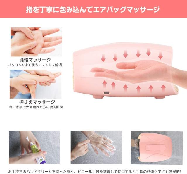 ★操作簡単:パソコン操作や家事やスマホ、働らく手指のご褒美。手や指先をエアバッグでしっかり包み込んでもみほぐし。いつでもハンドケア マッサージ。
