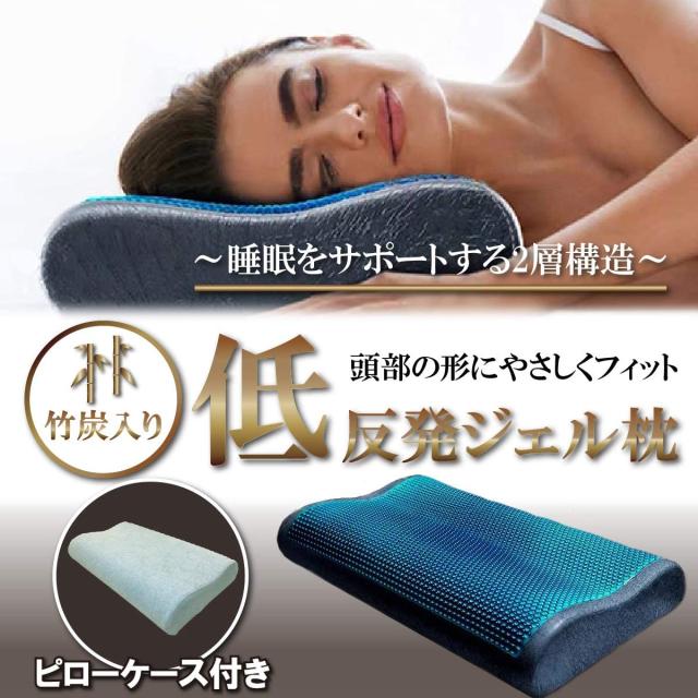 【おすすめポイント】夏はひんやり爽快! 低反発枕にジェルを融合した低反発ジェルピローです。 形状に合わせて優しくフィット! ジェル素材を使用することにより、ポリウレタン素材のみの枕とは異なり、より優しく頭を包み込んで安定したフィット感をキープしてくれます。 特に暑い季節には、ジェル特徴であるひんやり感も、ジェルを直接頭にあてて頂くことによって感じていただけます。 高密度モールド製法で反発弾性が低く、粘りのあるウレタンフォームです。 ゆっくりと元に戻る性質があり衝撃吸収性も高く、血流障害や床ずれ防止にも効果的ともいわれ深い眠りへと導いてくれます。 洗える枕カバー付きです!