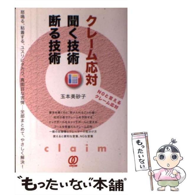 商品名:【中古】 「クレーム応対」聞く技術、断る技術 / 玉本 美砂子 / ぱる出版 [単行本]【メール便送料無料】