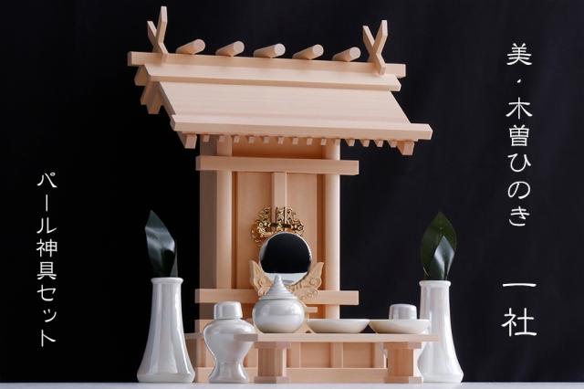 匠造り ■ 木曽ひのき ■ 神棚 一社 ■ パール神具付き 神棚セット 神具セット 木曽檜 木曽桧