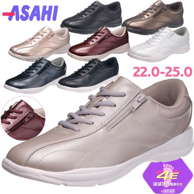 幅広4E アサヒシューズ ASAHI ファスナー付き ウォーキングシューズ レディース 超軽量 衝撃吸収 反射 紐靴 No511