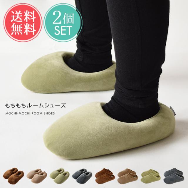 送料無料 もちもちルームシューズ 2足セット【ルームシューズ ルームスリッパ スリッパ あったか レディース おしゃれ ふわふわ もちもち マシュマロタッチ 可愛い 暖かい 秋 冬 軽量 冷え対策 寒さ対策】
