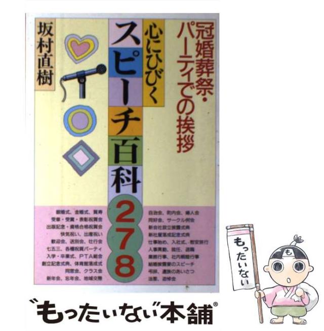 商品名:【中古】 心にひびくスピーチ百科278 冠婚葬祭・パーティでの挨拶 / 坂村直樹 / 永岡書店 [単行本]【メール便送料無料】