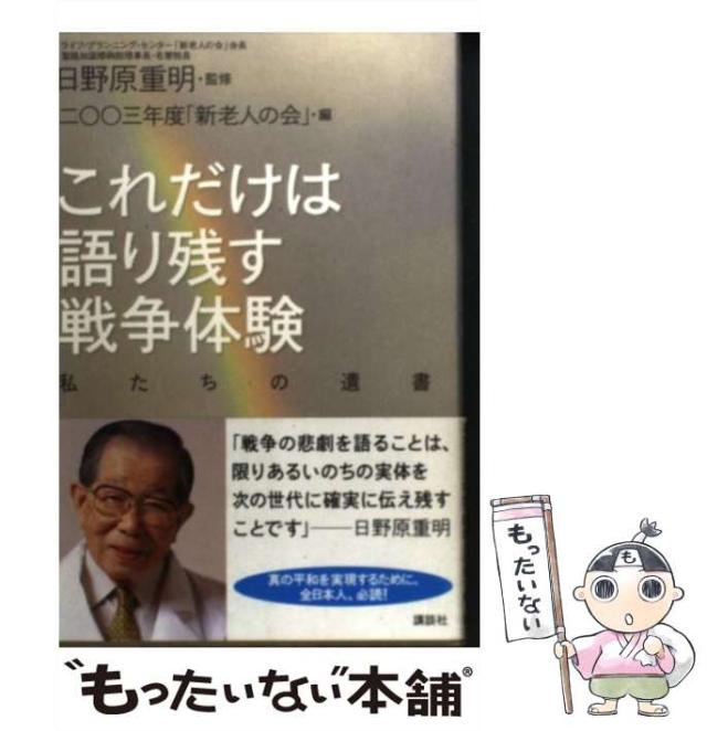 商品名:【中古】 これだけは語り残す戦争体験 私たちの遺書 / 日野原重明、二〇〇三年度「新老人の会」 / 講談社 [単行本]【メール便送料無料】