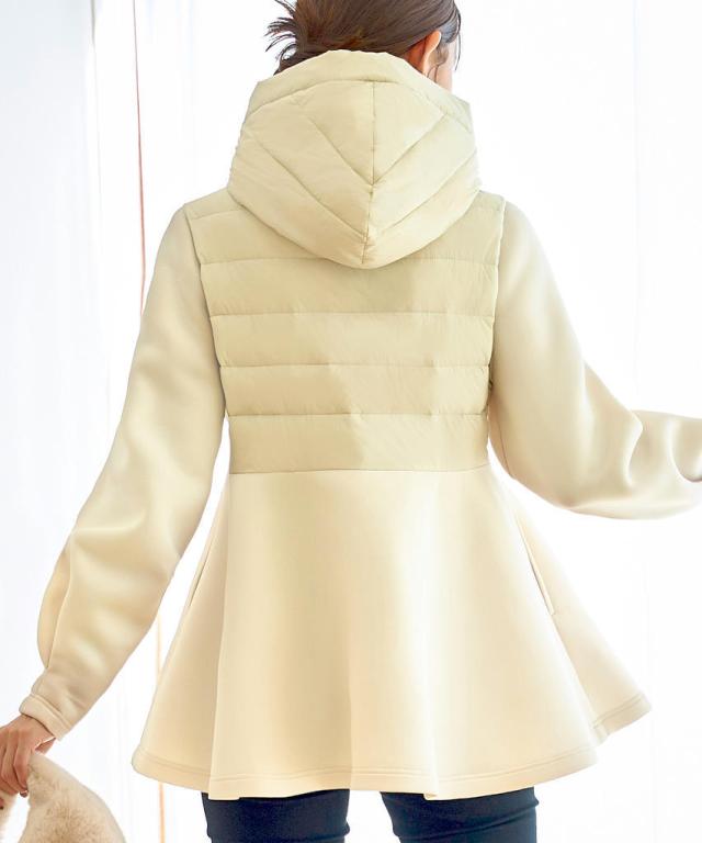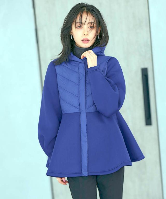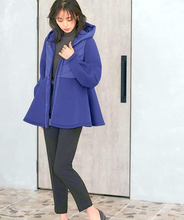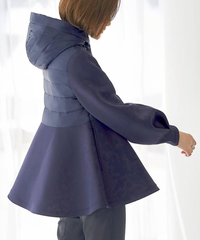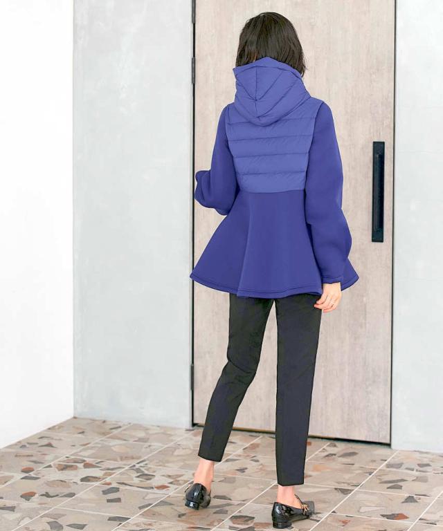 ペプラムと袖には適度なハリ感と柔軟性を併せ持ったストレッチ性のあるダンボールニット生地を使用しています。