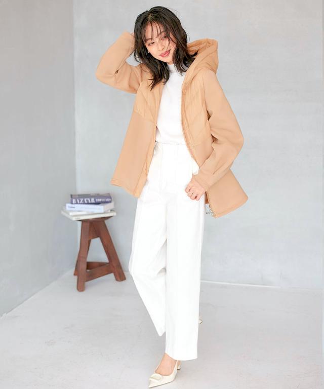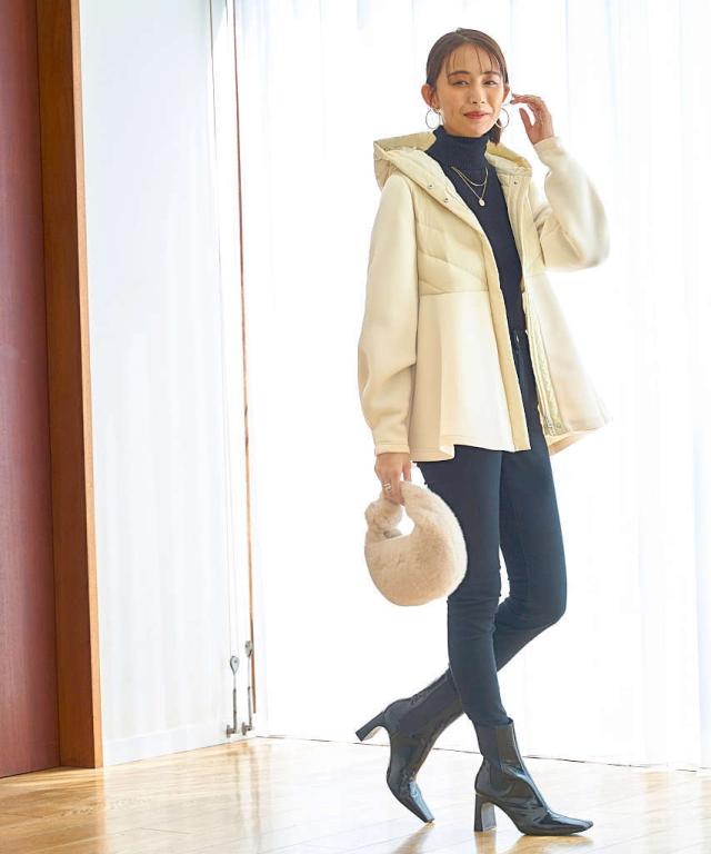 フードで顔周りを華やかにしつつ、