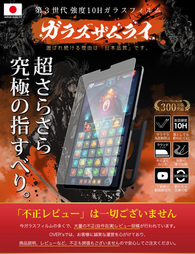 iPad Pro 11インチ ガラスフィルム 保護フィルム フィルム アンチグレア 第4世代(2022) 第3世代(2021) 第2世代(2020) 第1世代(2018) iPad Air4 10.9インチ 第4世代(2020) Air5 10.9インチ 第5世代 (2022) 10H ガラスザムライ 液晶保護フィルム OVER`s オーバーズ TP01