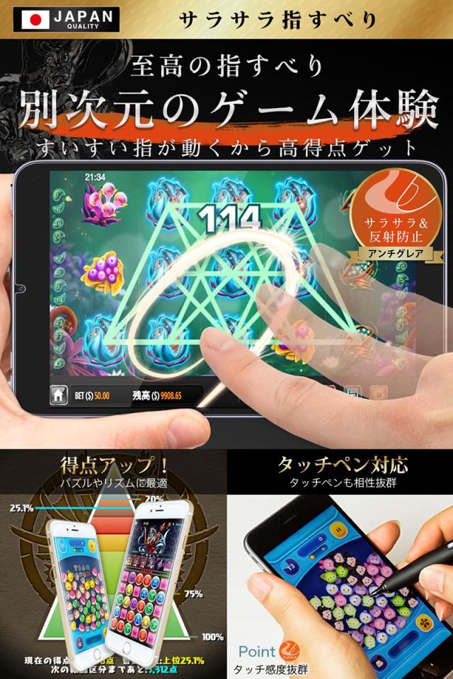 「パズドラで高得点ゲット。」思い通りに 指をすいすい動かせるアンチグレアフィルムを貼って高得点をゲット。【 ギラギラ感を抑える 低反射 】人影、蛍光灯や太陽光の反射など「ギラギラ感」をなくす低反射。反射低減フィルムのアンチグレアはあなたのゲームの時間を邪魔しません。
