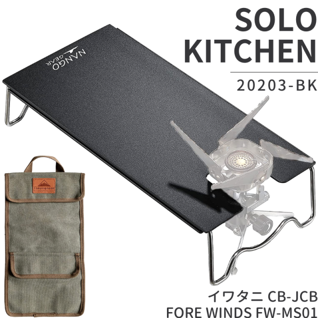 遮熱テーブル バーナーテーブル シングルバーナー イワタニ CB-JCB用 FORE WINDS FW-MS01用 ソロテーブル アルミテーブル NANGOGEAR ソロキッチン 収納バック付き キャンピングキッチン 南湖ギア キャンプ用品 テーブル ミニ SOLO KITCHEN 20203-BK