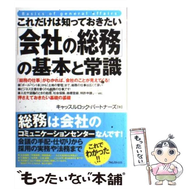 商品名:【中古】 これだけは知っておきたい「会社の総務」の基本と常識 / キャッスルロック・パートナーズ / フォレスト出版 [単行本(ソフトカバー)]【メール便送料無料】