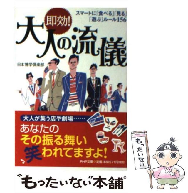 商品名:【中古】 即効!大人の流儀 スマートに「食べる」「見る」「遊ぶ」ルール156 (PHP文庫 に12-62) / 日本博学倶楽部 / PHP研究所 [文庫]【メール便送料無料】