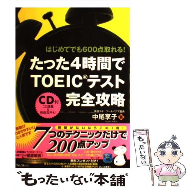 商品名:【中古】 たった4時間でTOEICテスト完全攻略 はじめてでも600点取れる! / 中尾享子 / フォレスト出版 [単行本(ソフトカバー)]【メール便送料無料】