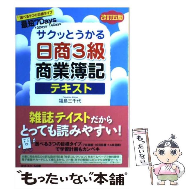 【中古】 サクッとうかる日商3級商業簿記テキスト 改訂5版 / 福島三千代 / ネットスクール出版本部 [単行本]【メール便送料無料】