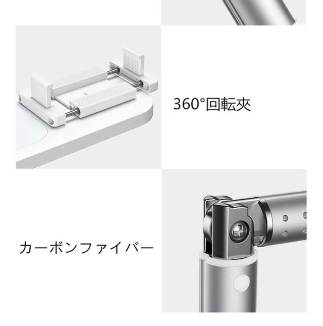 クリップは360°回転可能です。また、角度の調整し簡単に俯瞰撮影時の照明にも使用できます。角度調整 【Bluetoothリモコン付属】