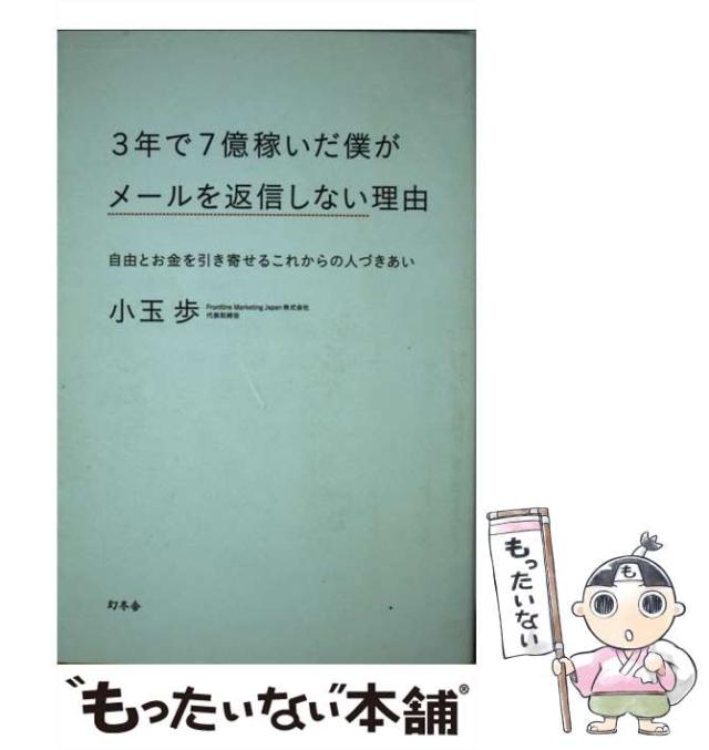 商品名:【中古】 3年で7億稼いだ僕がメールを返信しない理由 自由とお金を引き寄せるこれからの人づきあい / 小玉 歩 / 幻冬舎 [単行本]【メール便送料無料】