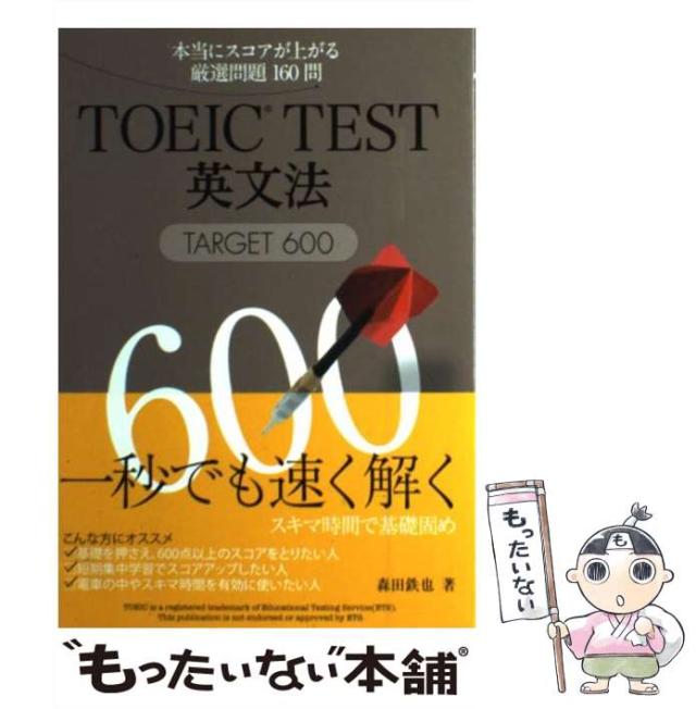 【中古】 TOEIC TEST英文法TARGET600 本当にスコアが上がる厳選問題160問 / 森田鉄也 / Jリサーチ出版 [単行本]【メール便送料無料】