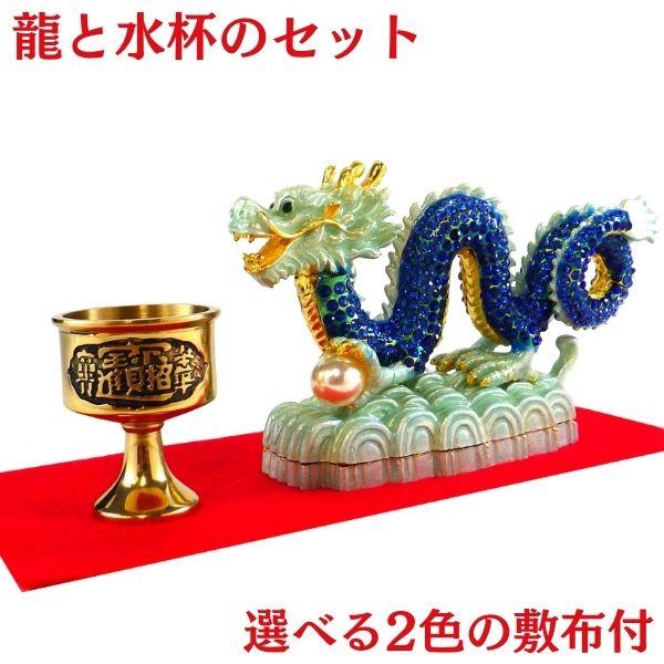 送料無料 龍の置物 龍 置物 龍グッズ 高級ラインストーン 藍龍と水杯のセット 龍 水杯 セット 風水 五本爪 置物 風水 玄関 福袋 2025年福袋
