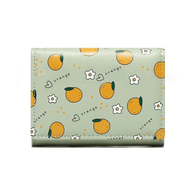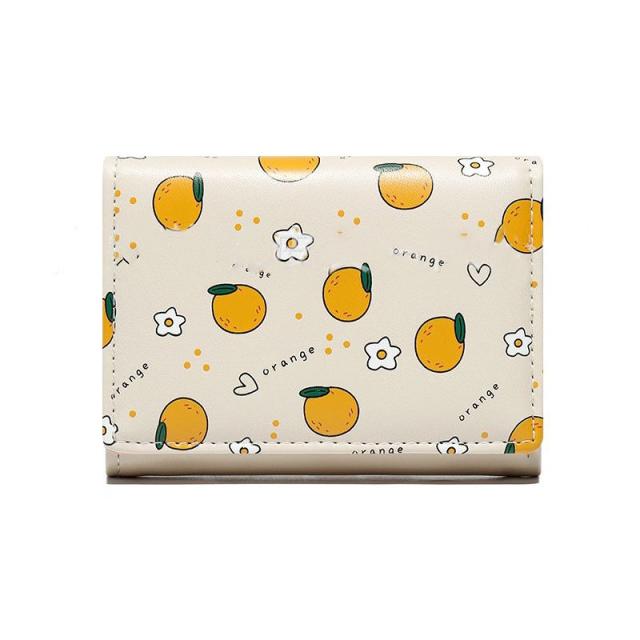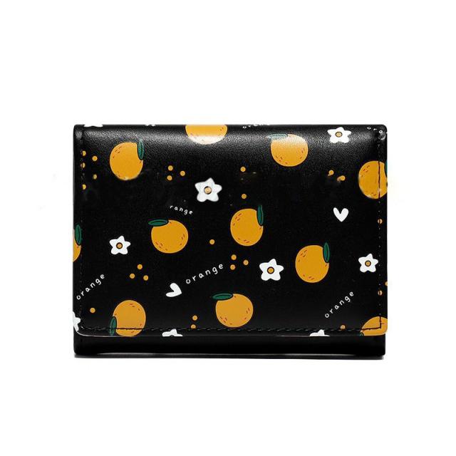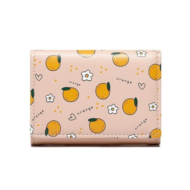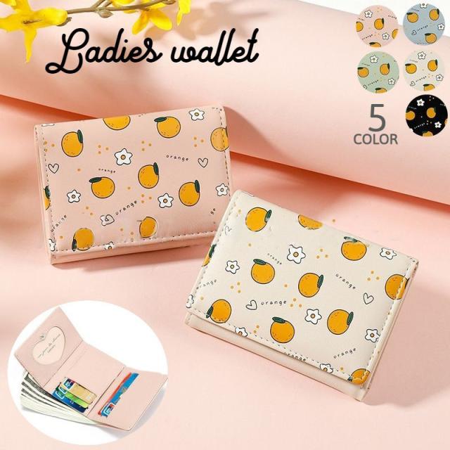 財布 3つ折り 三つ折り レディース 折りたたみ財布 婦人 女性 女の子 コンパクト オレンジ イラスト お花 フラワー 手書風 カード収納 フェイク