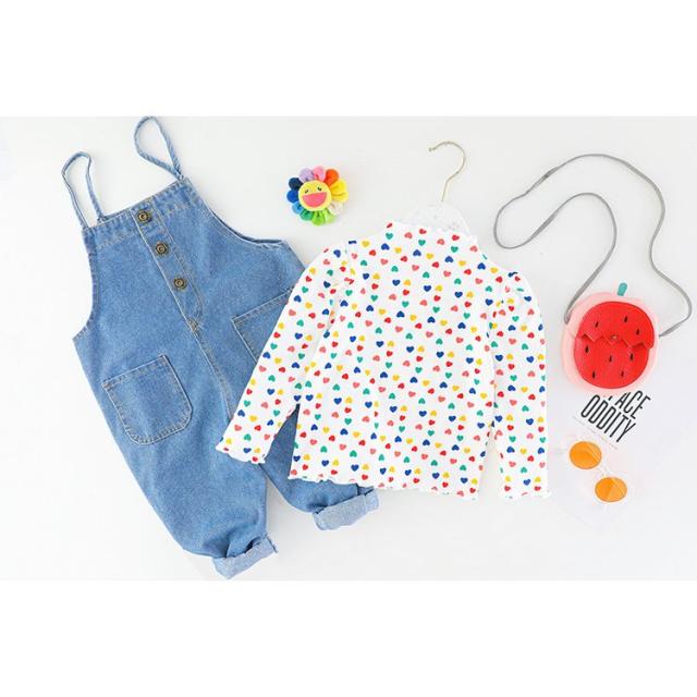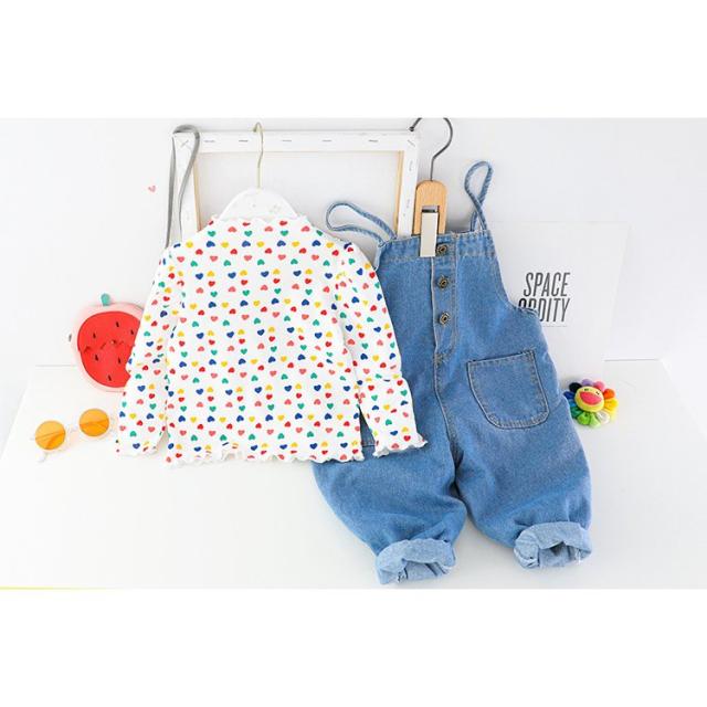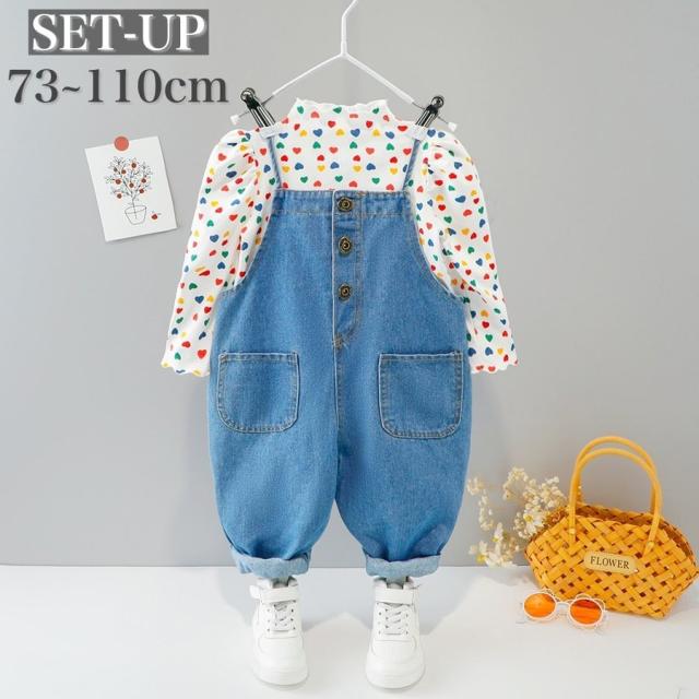 セットアップ 上下 2点セット キッズ ベビー 子供用 女の子 トップス ボトムス ブラウス 長袖 ハイネック オーバーオール サロペットパンツ 長ズ