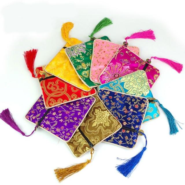 ジュエリーポーチ アクセサリーポーチ 小物入れ 小銭入れ 携帯用 中国雑貨 サテン調 光沢感 ファスナー ジッパー カラバリ豊富 カラフル 可愛い ア
