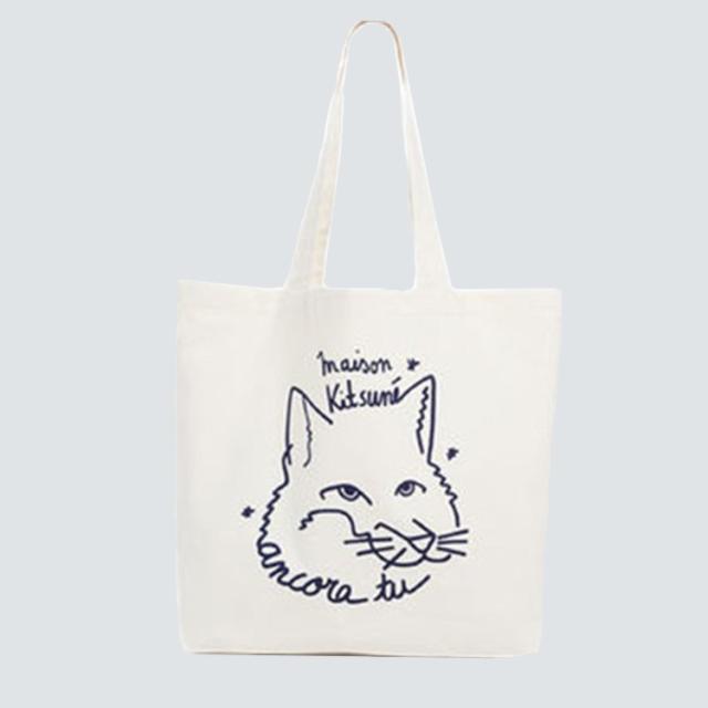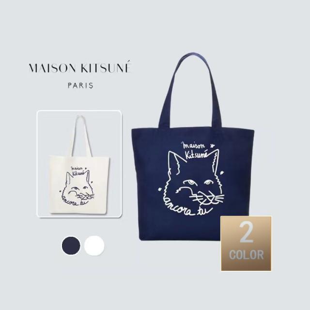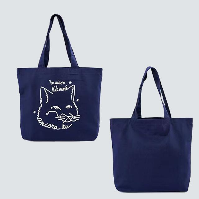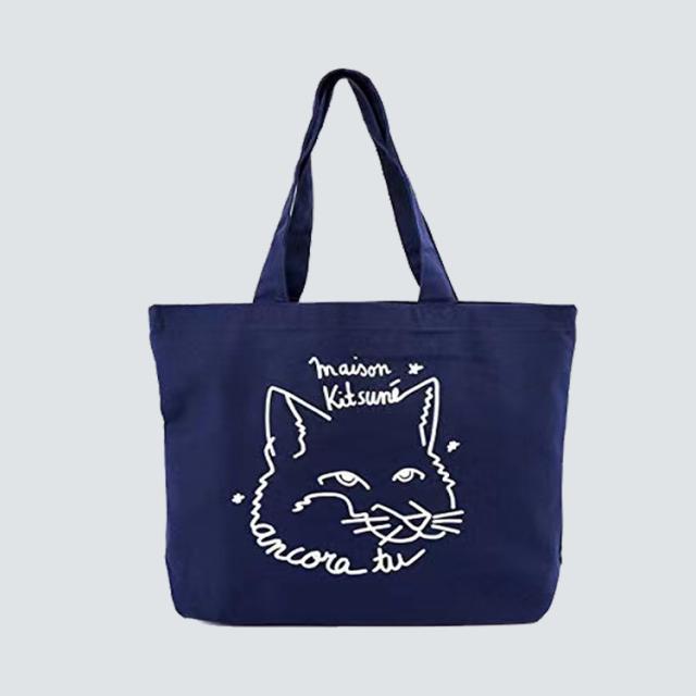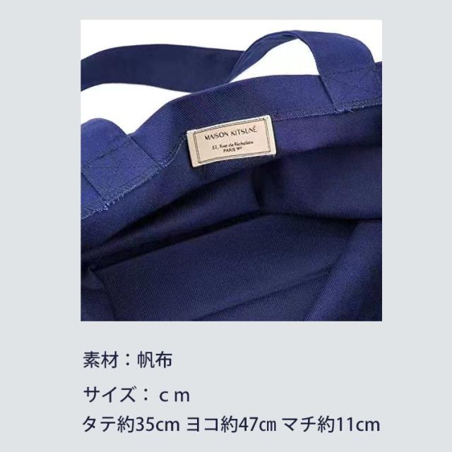 メゾンキツネ MAISON KITSUNE トートバッグ キャンバス ショッピングバッグ ユニセックス ネイビー ホワイト メンズ レディース