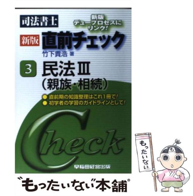 【中古】 民法 3 親族・相続 新版 (直前チェック 司法書士 3) / 竹下貴浩 / 早稲田経営出版 [単行本]【メール便送料無料】