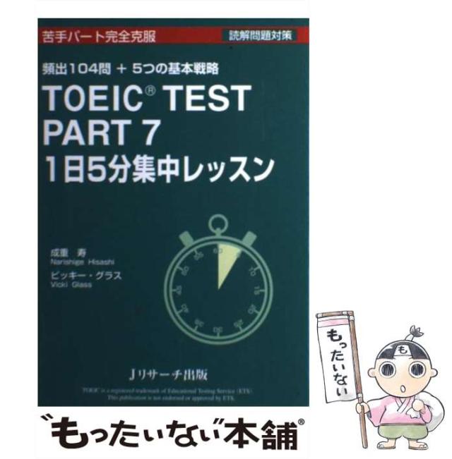 【中古】 TOEIC TEST PART 7 1日5分集中レッスン 苦手パート完全克服 頻出104問+5つの基本戦略 読解問題対策 / 成重 寿 / Jリサーチ出版 [単行本]【メール便送料無料】