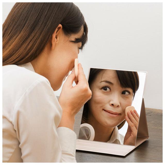 | 商品説明 | ・くすみのないキレイな映り♪大きな鏡面でメイクしやすい、折立ミラー(Lサイズ)。 ・特許取得の鏡材(ナピュア)を使用。ガラスの色に影響されない自然で純粋な色表現により、肌本来の色を素直に映し出すのが魅力のミラー。 ・ありのままの顔色を映し出してくれるので、ファンデーションの色合わせやポイントメイクをするのに最適。 ・取り付けられたケースには、少しザラっとした肌触りのPVC素材を使用。マットな光沢のある、主張しすぎないカラーがおしゃれ♪ ・3段階に角度調整が可能なのも嬉しいポイント。 ・使わない時はパタンと畳んでスリムにまとまる折立式タイプ。サッと取り出しやすいサイズ感で収納スペースに困らず、持ち運びにも便利。 |