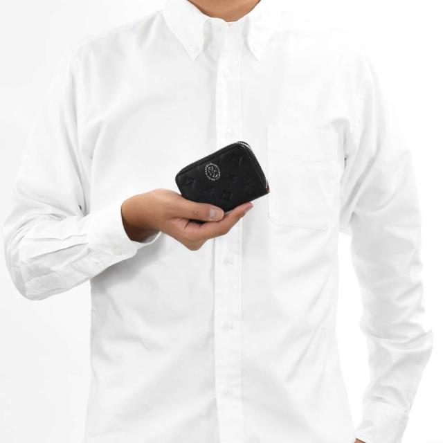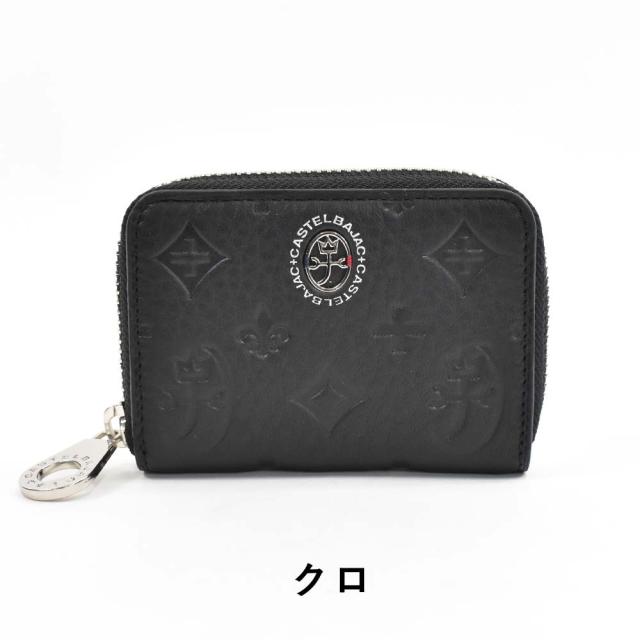 カステルバジャックのモノグラム柄が特徴の小銭入れ。ポイントとなっているシルバーの家紋とブランロゴが高級感を引き立たせています。ユニセックスで持てるベーシックな形・デザインです。