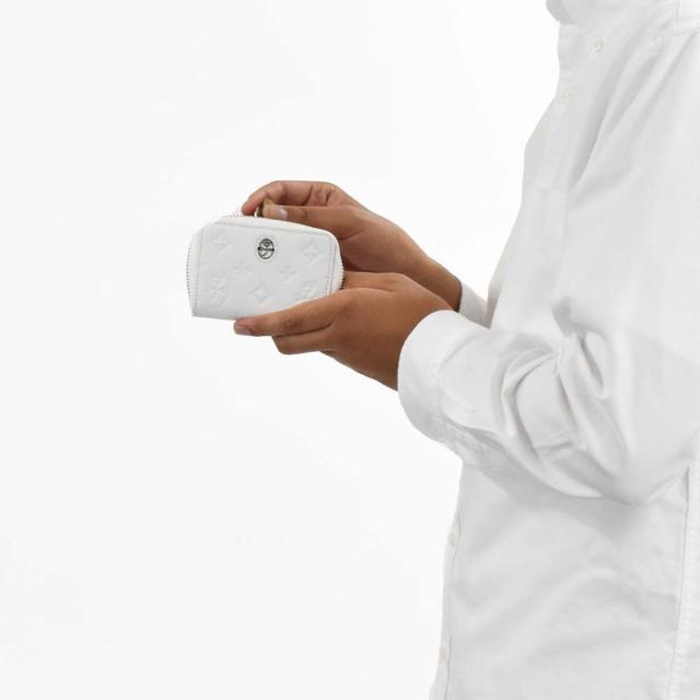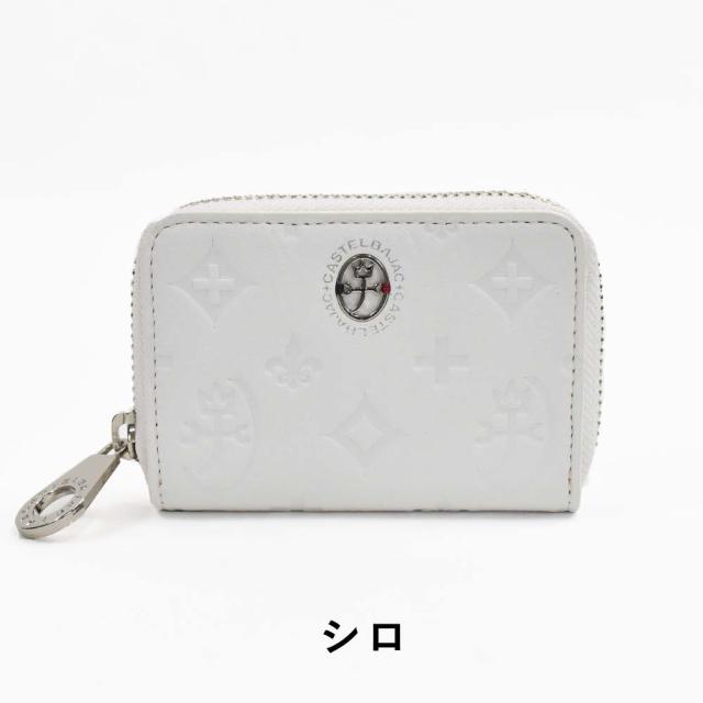 カステルバジャックのモノグラム柄をシュリンクの効いたソフトなレザーにしっかりと型押しした素材を使用。「革らしさ」を存分に感じられる、持ち心地の良い革小物です。ブランドの家紋周りのロゴはシルバー箔で押されており、より一層高級感を引き立たせています。