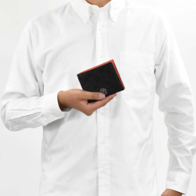 シンプルなデザインの二つ折り財布。札入れと小銭入れは2層に分かれているため仕分けが可能。カードポケットは4つ、そのほかにもポケットが3つあるため、カードの収納も安心です。