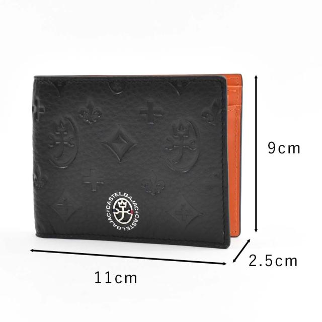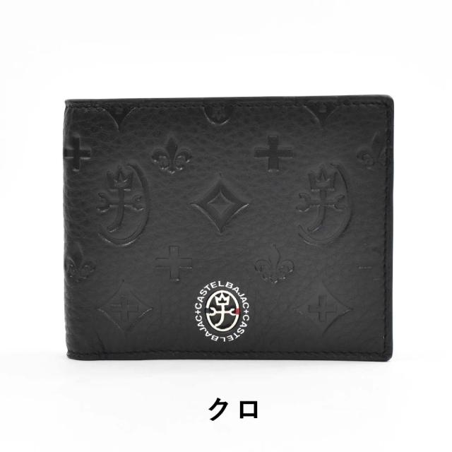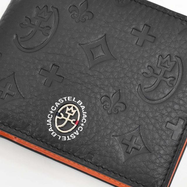 カステルバジャックのモノグラム柄が特徴の二つ折り財布。ポイントとなっているシルバーの家紋とブランロゴが高級感を引き立たせています。ユニセックスで持てるベーシックな形・デザインです。