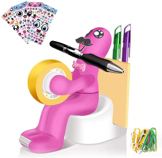 多機能:かわいい人はペンを口に入れることができ、トイレはメモ用紙ホルダーとして使用でき、紙クリップやメモ用紙の保管にも使用でき、水タンクは便利なペンホルダーです。 悪役の磁気のお尻は紙のクリップを引き付けることができます。
