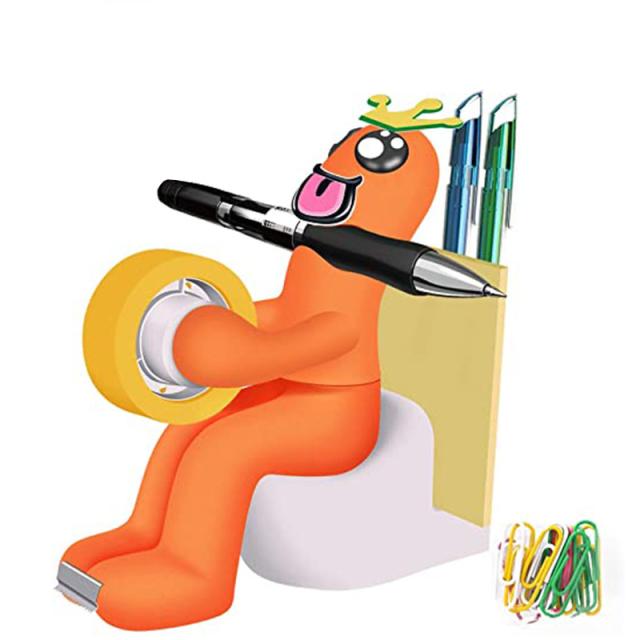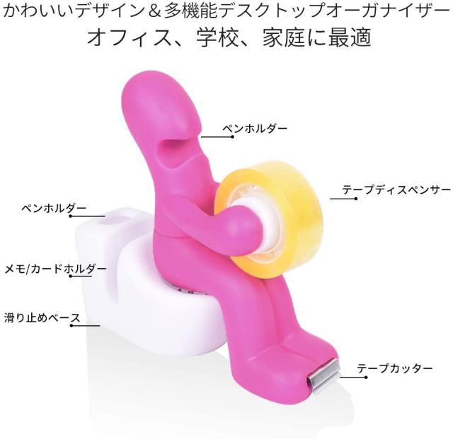 オフィス用品 テープカッター ペン立て クリップホルダー メモホルダー 1台4役 人型 トイレ形状 多機能 文房具 小物入れ 卓上収納 無料のステッカー
