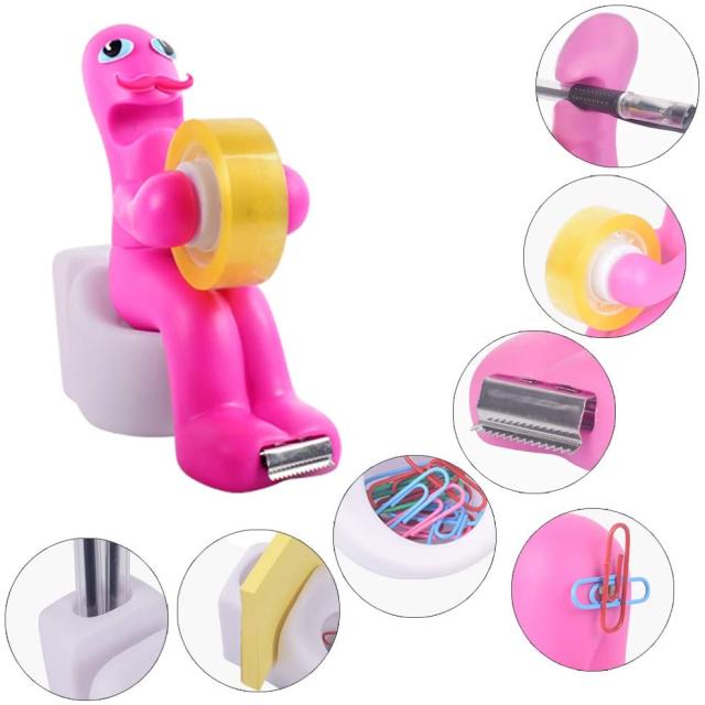 このかわいい男は、ペンを口に、テープを手に持ち、足をテープカッターとして使用し、お尻は磁気でクリップを保持できます。