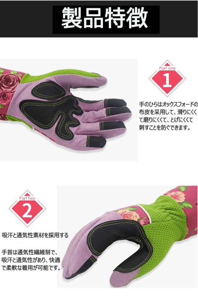 手のひらと指先部分は薄い合成革で作られ、通気性と防水性が良く、また耐穿刺性も優れており、バラなどの有刺植物から手を守ってくれますので、とても便利で安全です。