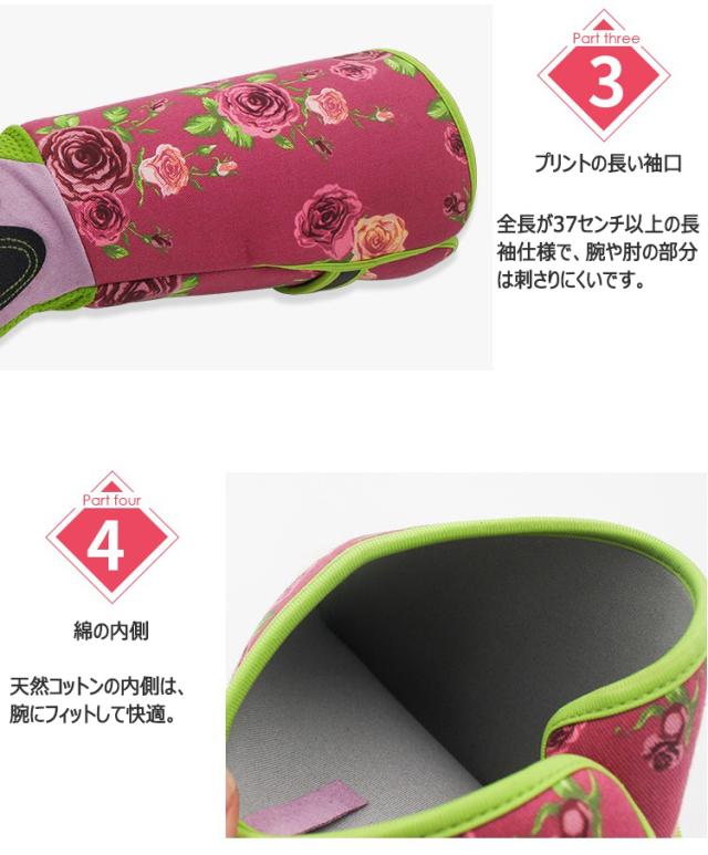 可愛いバラのデザインがガーデニングをより面白くします。また女性の手に合わせて手のひらと指先部分は合成革材質で、とても快適で柔らかく、女性のガーデニング作業に最適です。