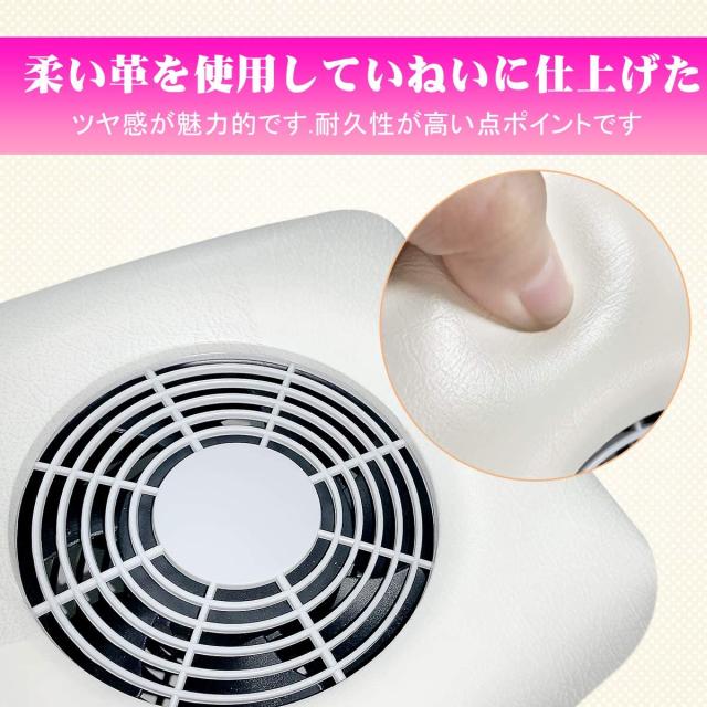 このネイル集塵機は柔らかいレザを採用されており、PUレザーは見た目は普通材質に比べて高級な質感で、手触りも柔らかい印象を受けます。