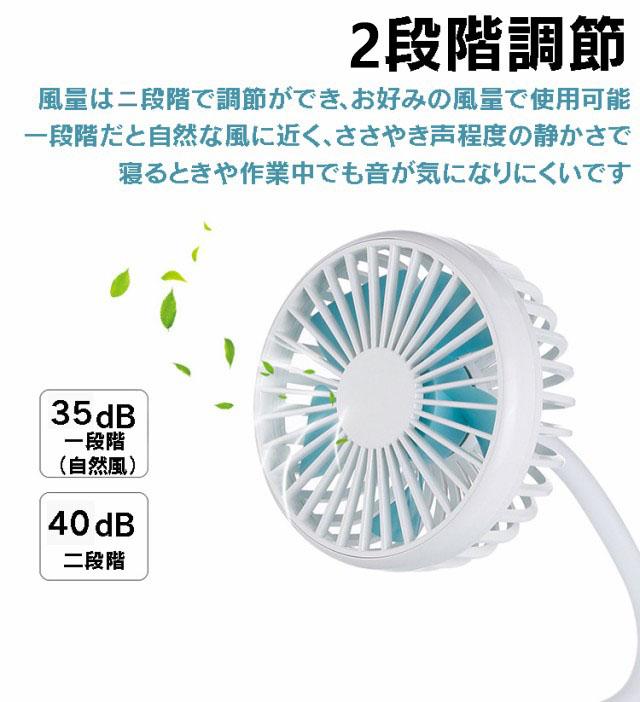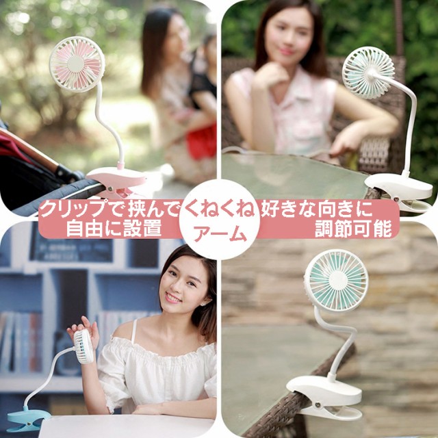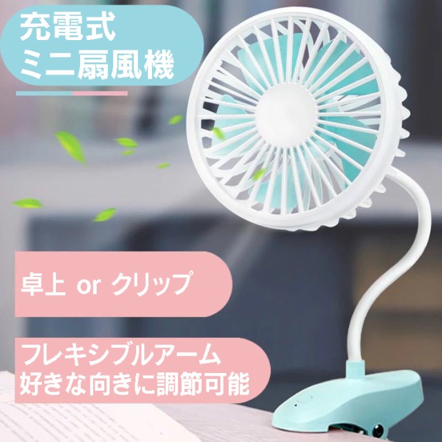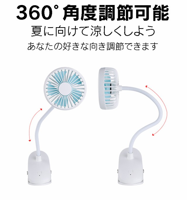 フレキシブルアーム卓上扇風機 充電式 静音 クリップ式 USB扇風機 風量2段 360度調節自由 ベビーカー