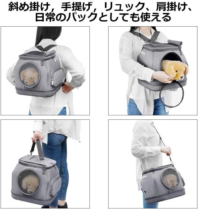 【便利、安定どんな場所でも使える】デザインはリュック,手提げ,肩掛けもでき、抱っこバッグとしても使えできます。生地もしっかりして柔らかい、ペットちゃんを入れても安定します、型も崩れません。バッグがっちり固定されるので安心感があります。手で洗ったり、洗濯機で洗濯したりすることができます、変形しにくく、耐久性あり。ペットちゃんとお出かけ、電車に乗る、病院へ検査する、公園で散歩するなど、どんな場所でも使えます。