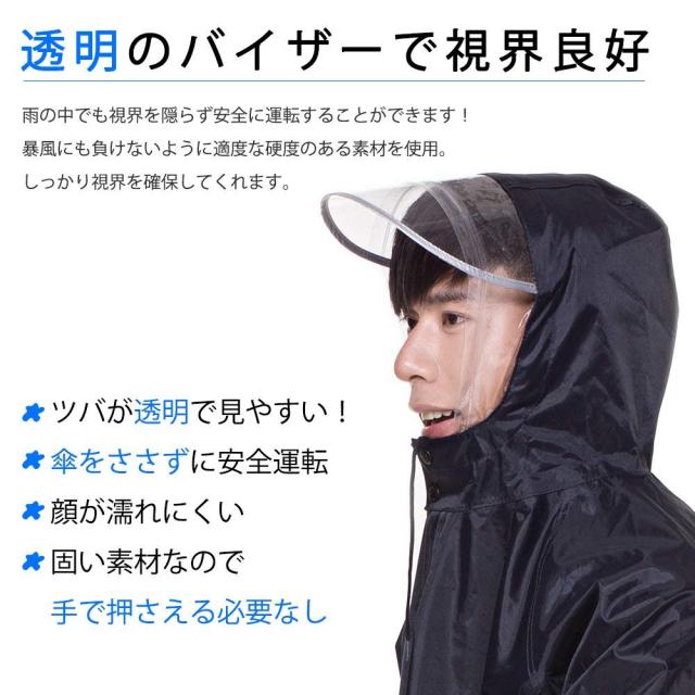 透明な大きめのつばを採用し雨にぬれにくく視界を遮らないので自転車も安心安全に運転できます。